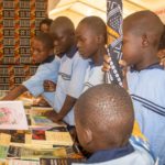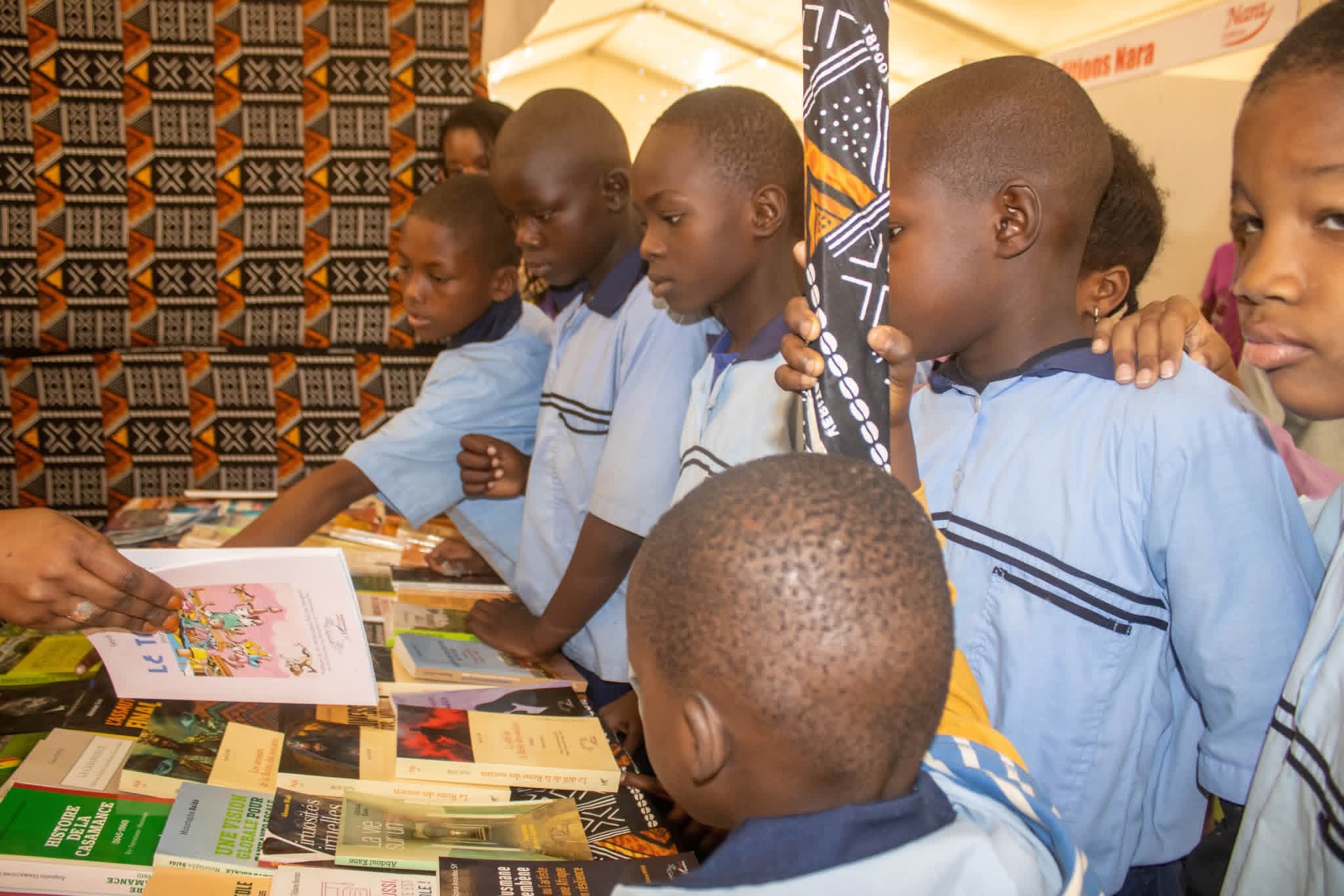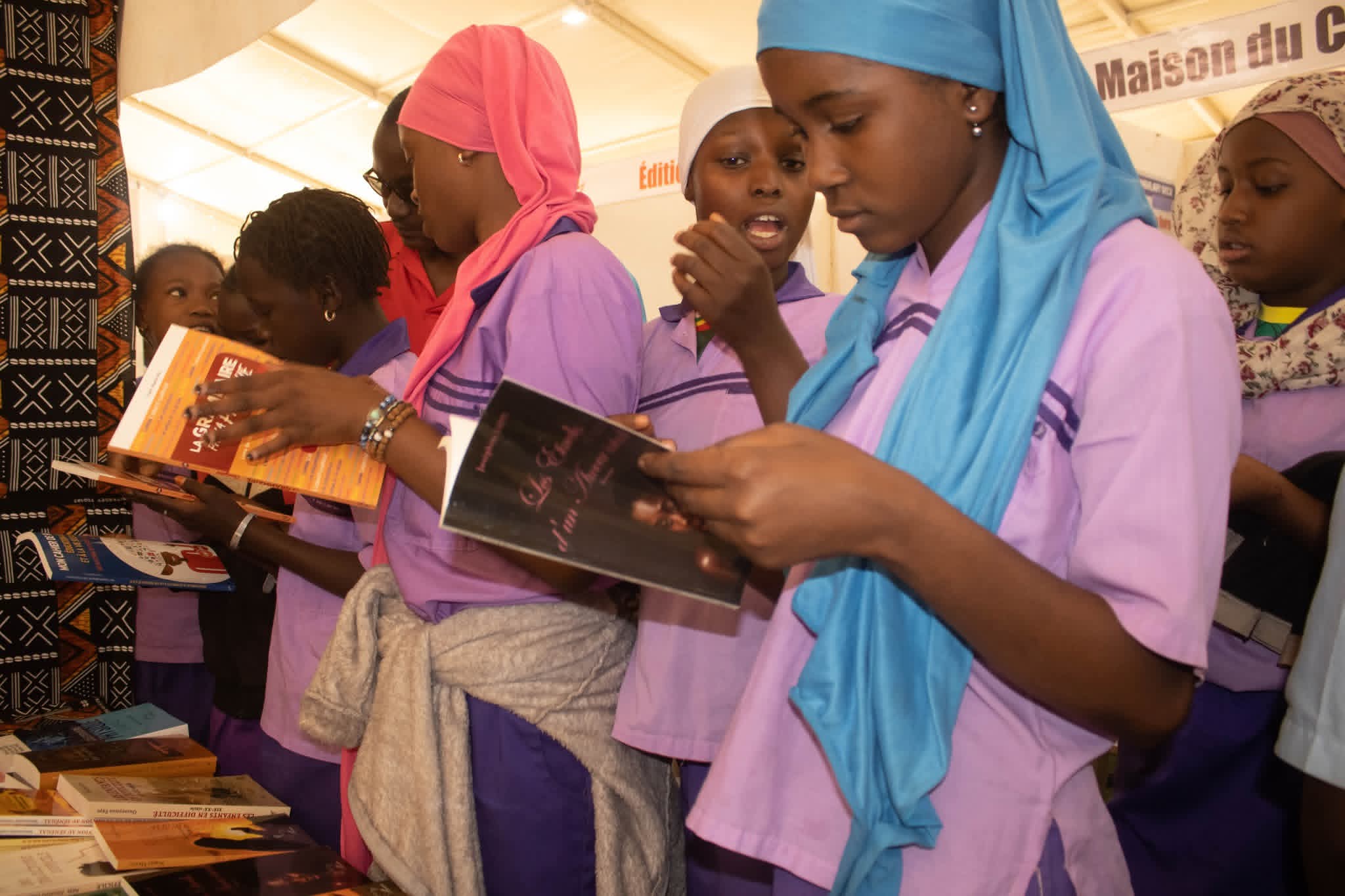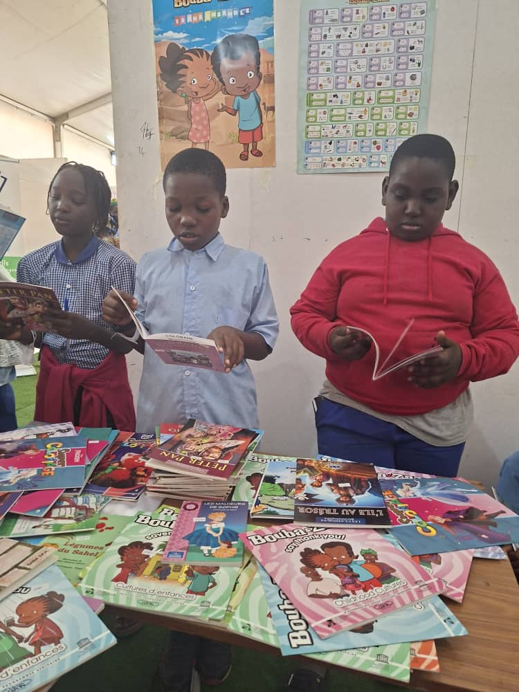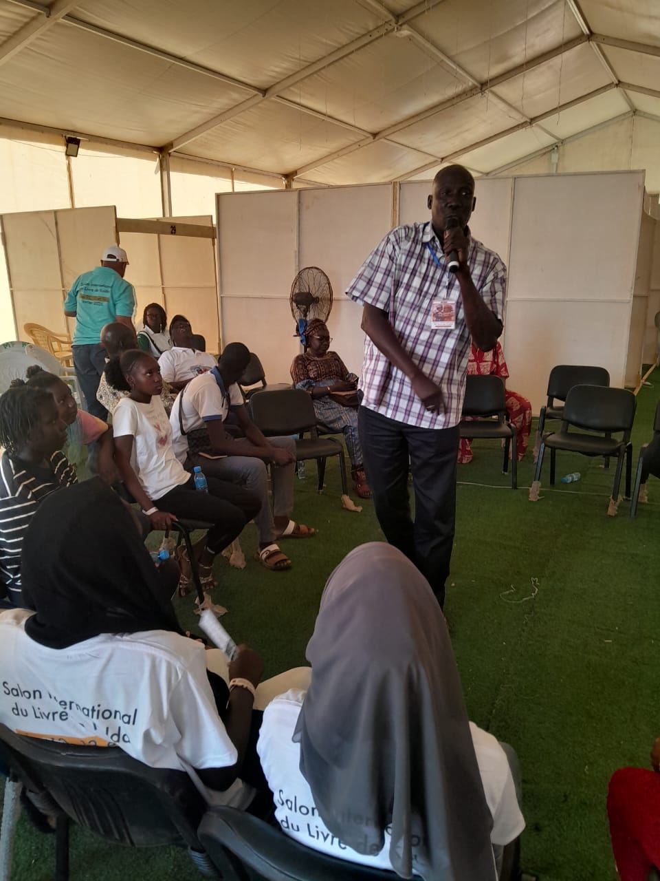 Visite de stands avec les élèves suivi du café littéraire animé par Emmanuel Magou Faye.